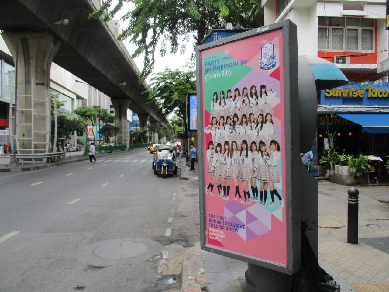 9月の滞在でパッポン通りを利用しましたが、構内で大きい宣伝広告を見かけました。ピンク系の色が日本にはないかわいらしい広告ですが、現在、タイ国内でCM10社ぐらいに出演して、連日のようにバンコクの通り、駅、電車、バス、テレビなどでBNK48を目をするようになりました。本家に負けないぐらい人気が高くなってきたように感じました。