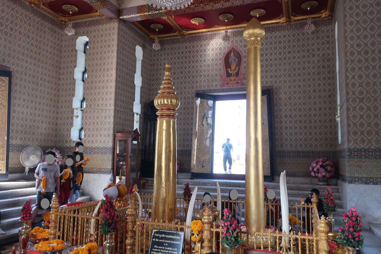 タイではよく見られる「町の柱」です。バンコクの町の柱はワット・プラケオ前にあり、お堂の中には2本の柱が立っています。長い方はラーマ1世、短い方はラーマ4世が建立したものだそうです。