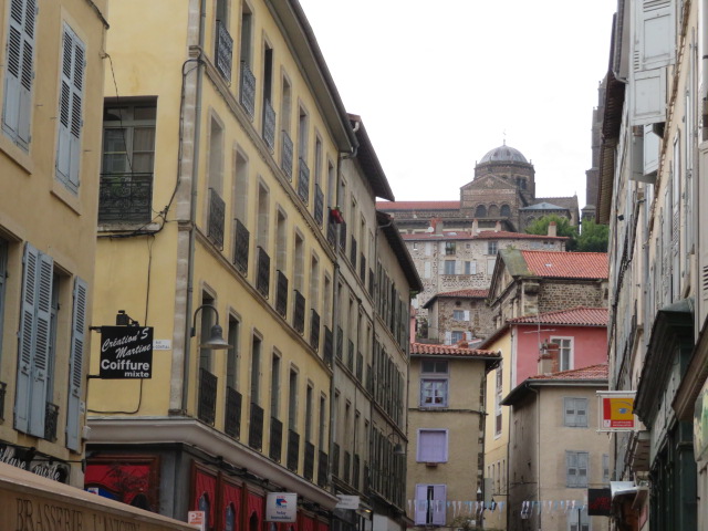ル・ピュイとは「山」を意味します。細い石畳が入り組んでいて、これだけでも散策していて楽しいでしょう。しかしこの街は、その路地の隙間からコルネイユ山が見え隠れして、この奇岩の風景を楽しめます。お店とともに、「奇岩が見えた」という楽しみ方をする街です。