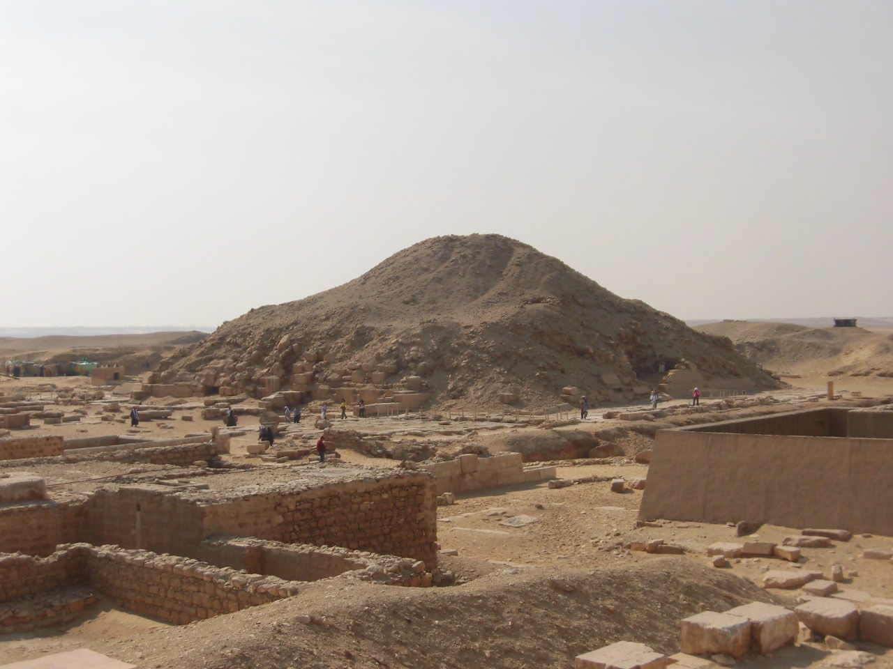 入口から入って左奥の方にあります。第五王朝末期のピラミッドですが、元々の高さは40mくらいだったそうです。使用した石材も良くなかったのでしょうか、ピラミッドというより瓦礫の山になっています。第四王朝のクフ王のピラミッドの大きさからすると、栄枯盛衰を感じさせます。