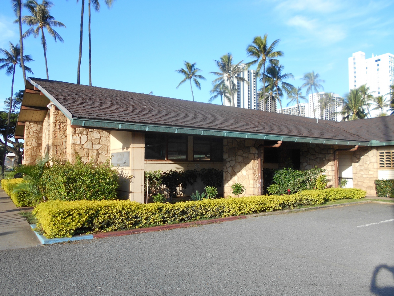 ワイキキビーチの山側アラワイ運河の東端に建つ公共図書館。アラワイブルバードとカパフル通り交差点にあるあまり大きくない平屋の図書館です。9度目のハワイで初めて知るほど目立たない図書館です。静かな環境で読書には適していると思います。
