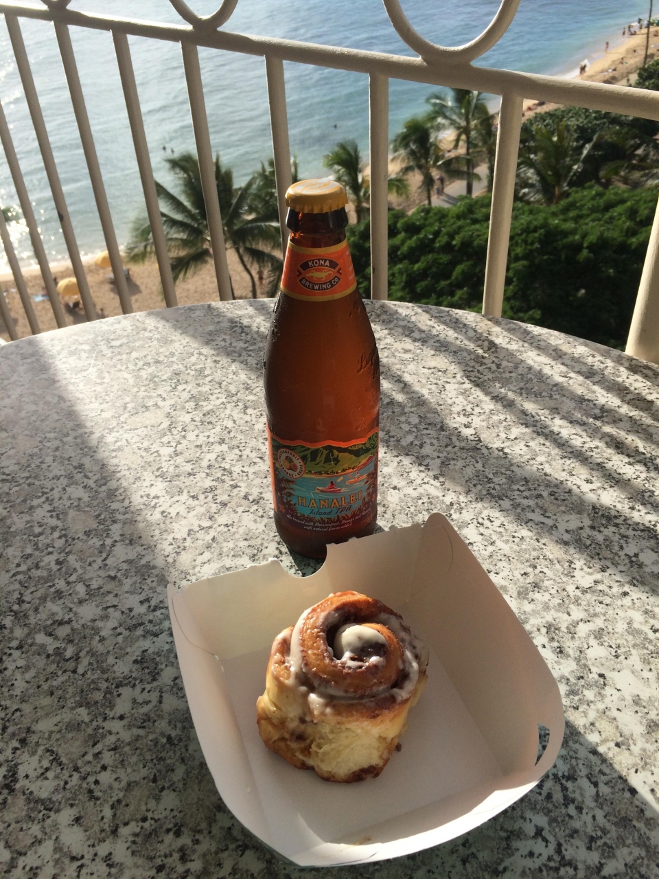 でも、コナビールとワイキキの海を見ながら食べるあまーいシナボンは、やっぱり最高!