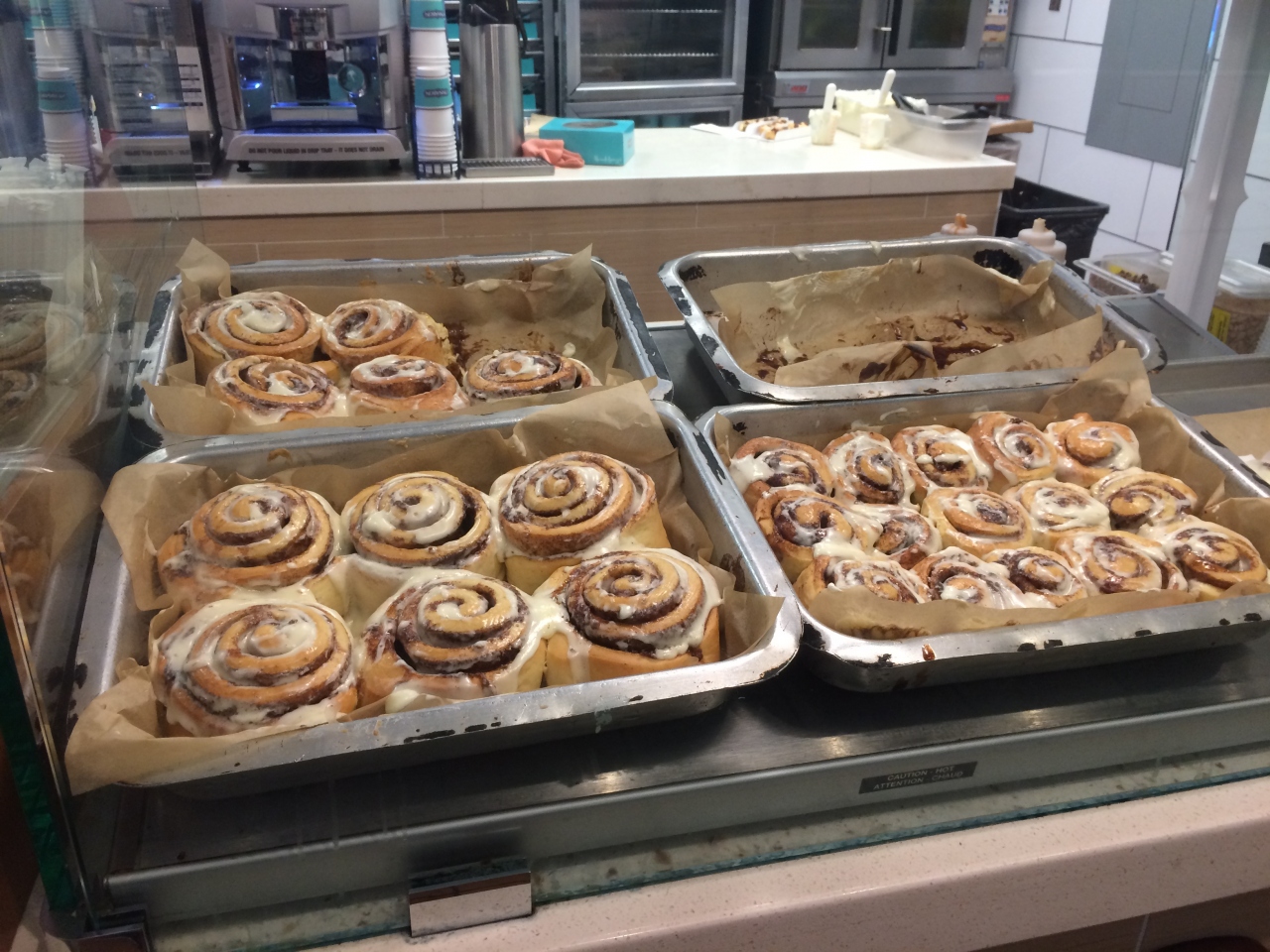 小さいシナボン(1個2.98ドル)を2個買って、オーシャンビューのコンドミニアムの部屋で食べました。