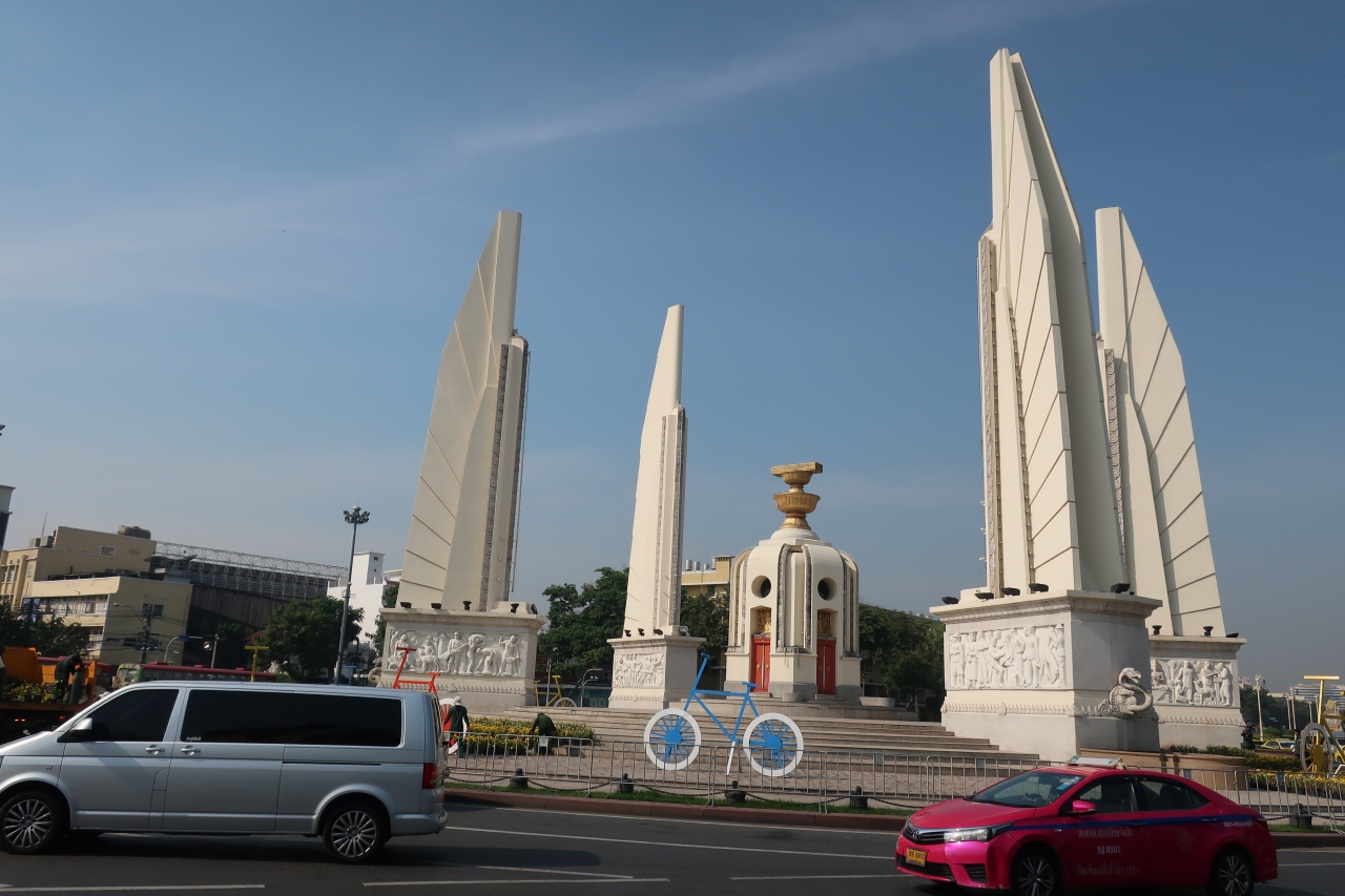 1932年の立憲革命を記念して建てられたものです。大きなロータリーの中央にあり、カオサン通りやサナーム・ルアン(王宮前広場)の近くにあります。わざわざ見に行くようなところではありませんが、ワット・プラケオなどに行く際にバスから見えたりします。