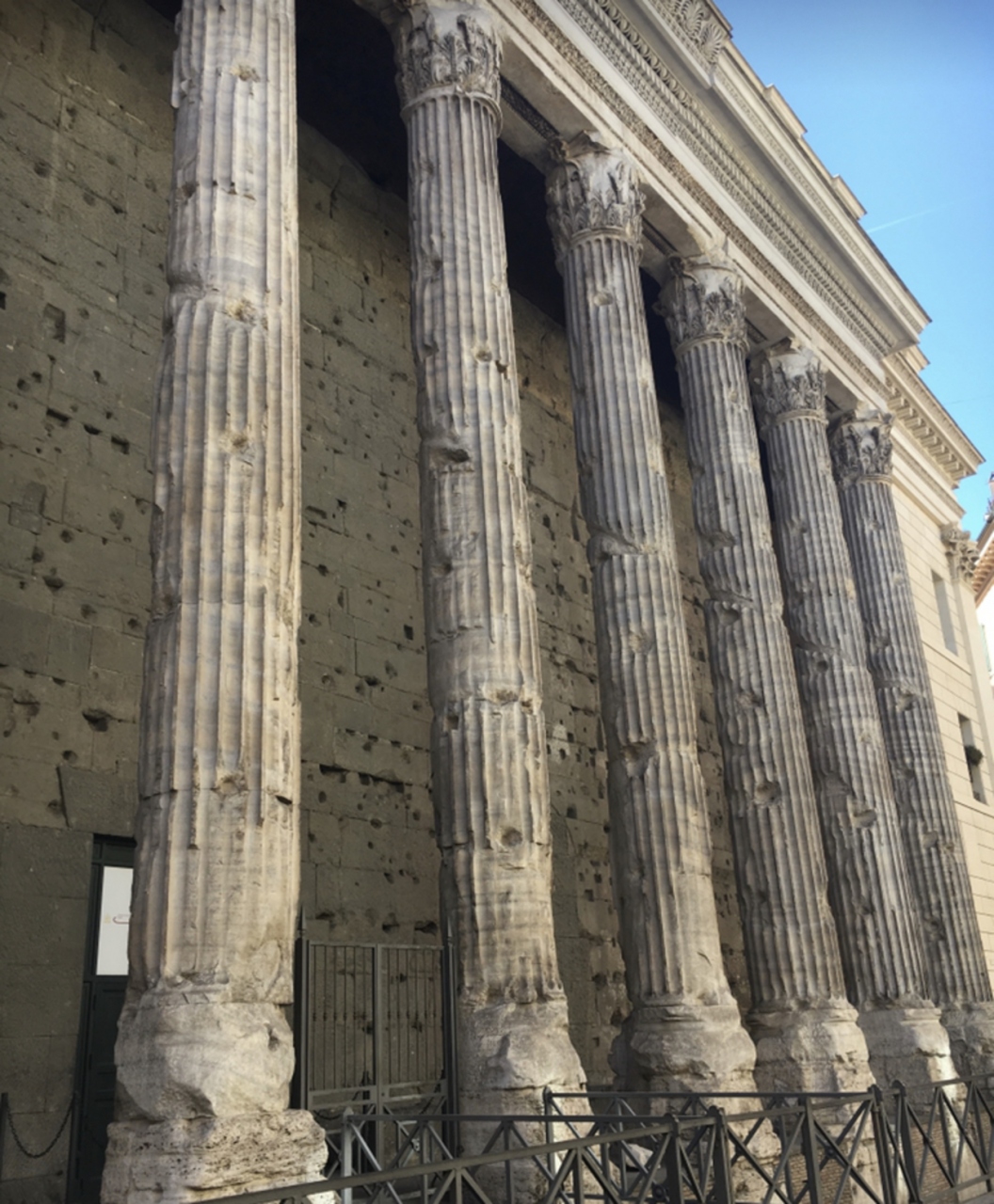 アドリアーノ神殿はローマの街中にありました。パンテオンから、お店がたくさん並ぶ、ローマの中心地をぶらぶら歩いていると、突然あらわれました。街中にこのような歴史を感じる建築が残されており、とても感慨深いです。