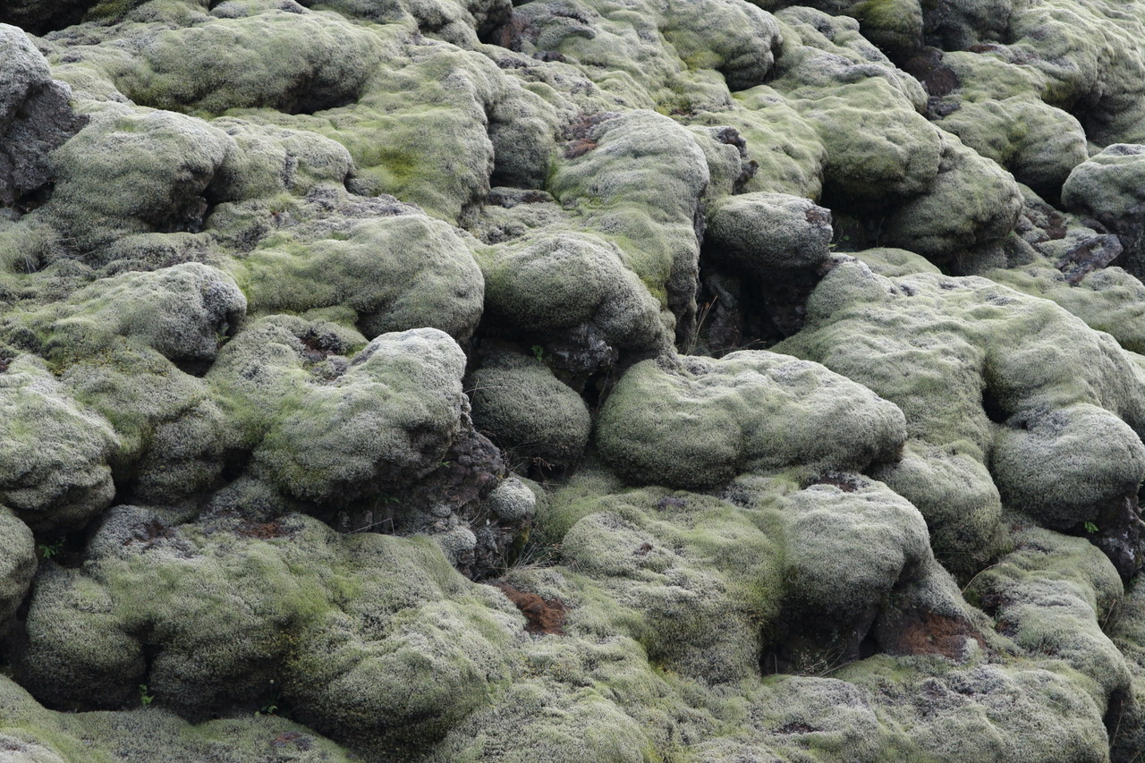 火山大噴火時に形成された溶岩がコケで覆われた大溶岩平原でしっかりした苔が付いており少し硬い感じです。