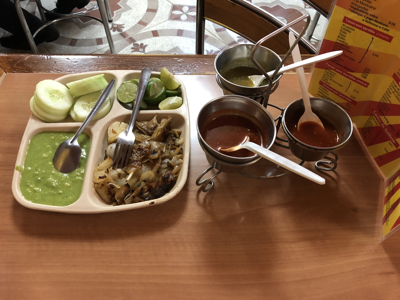 メニューはスペイン語のみで、料理の写真はありませんが、調理しているところに行って注文すれば、自分の食べたいものは食べられます。