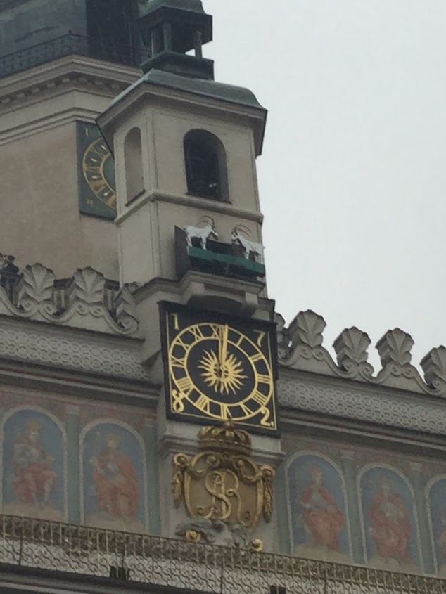 このポズナンの旧市街にある旧市庁舎では、時間になると時計の鐘がなり、その後係りの人がラッパを吹き鳴らします。すると