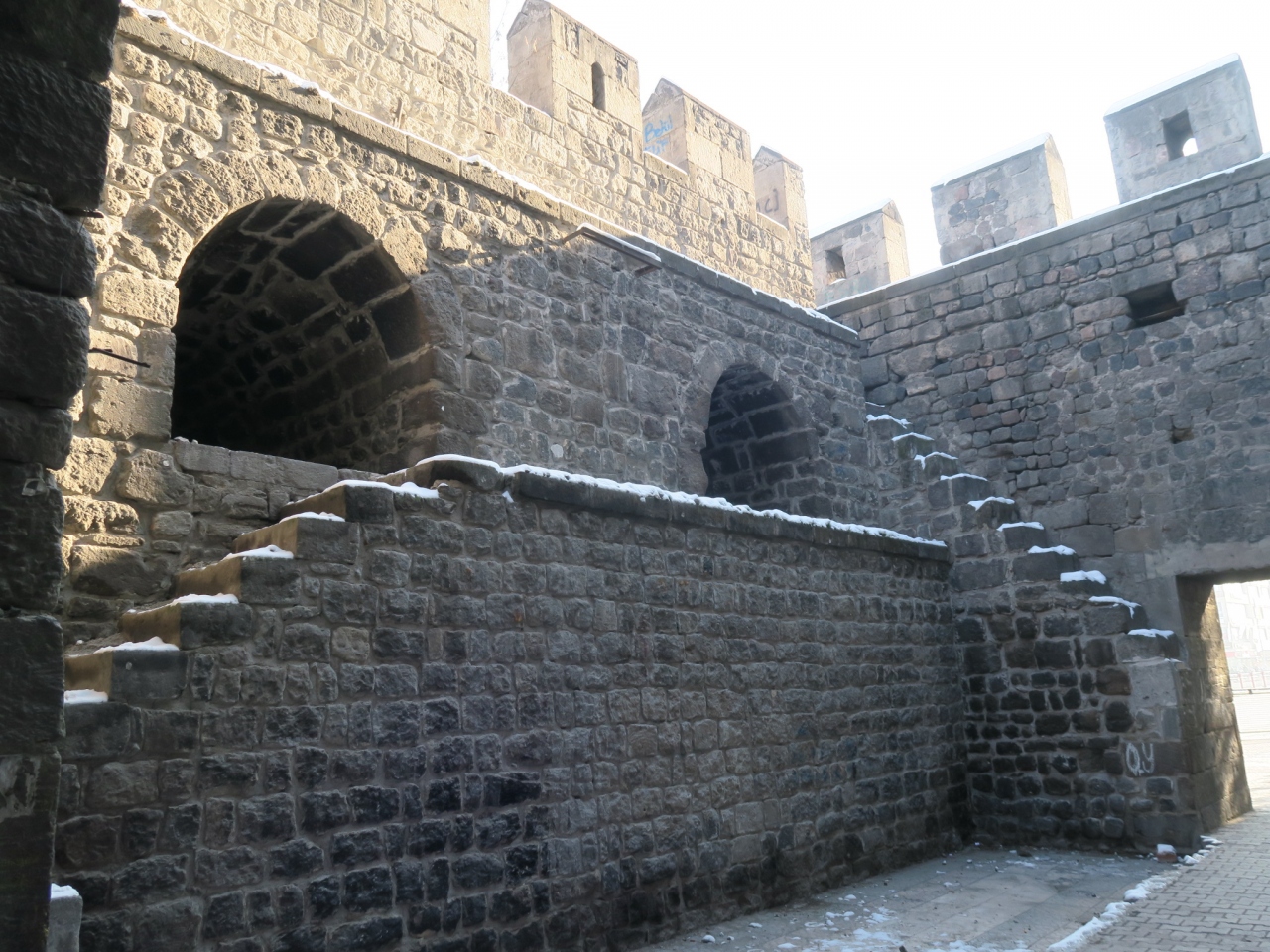 雰囲気を味わうなら、東面のバスターミナル南側に城の入口だったところに、昔のお城の面影が残った遺構がありますので、それで当面は満足するしかないです。
