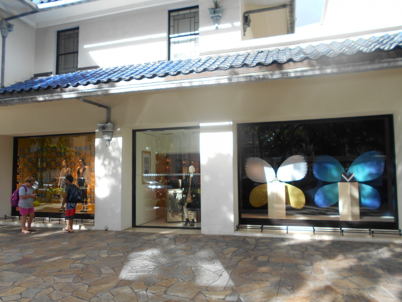 ワイキキ中心部カラカウア通り沿い山側に位置しロイヤルハワイアンセンター西端のちょうど対面にある超有名ブランド路面店。フランスの高級ブランドで世界の男女の憧れの的、特にバッグが人気です。店の外装が白壁で屋根に瓦が使用されウインドウも凝った展示がしてありそれを見るだけでも楽しくなります。ハワイでのフラッグ店舗ならではですね。