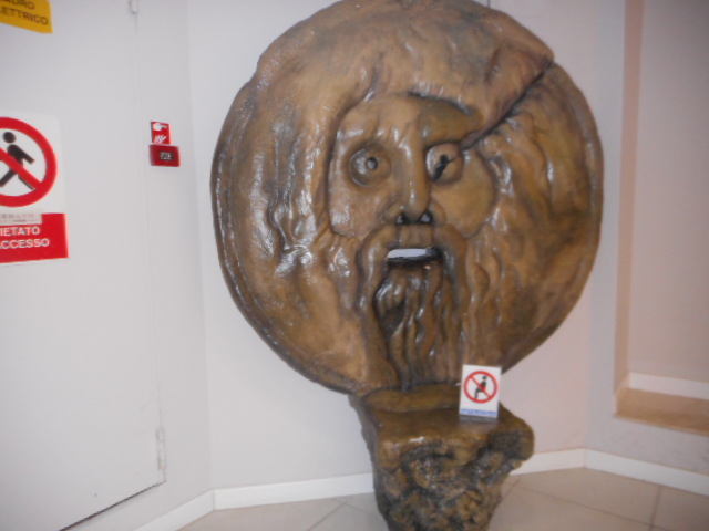 テルミニ駅近くのレブブリカ広場のアーケイド街の裏手に位置しています。階下に休憩室があり、そこにフェイクの”真実の口”のレプリカがありましたので、手を入れました。お茶やローマの地図も頂けますし、一休みには便利でした。各国で三越が撤退していますが、ローマは健在でした。