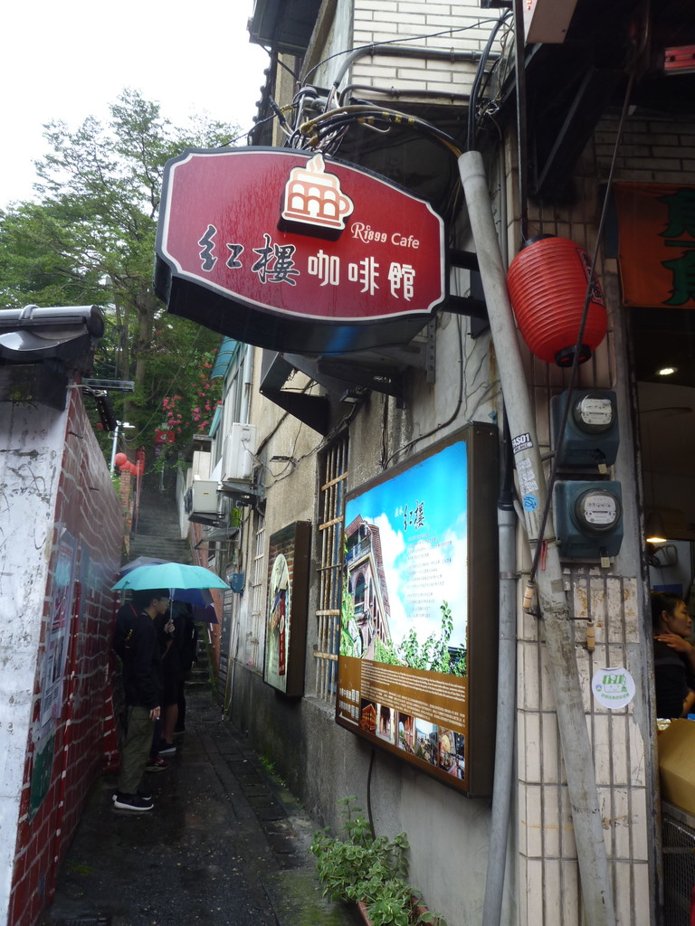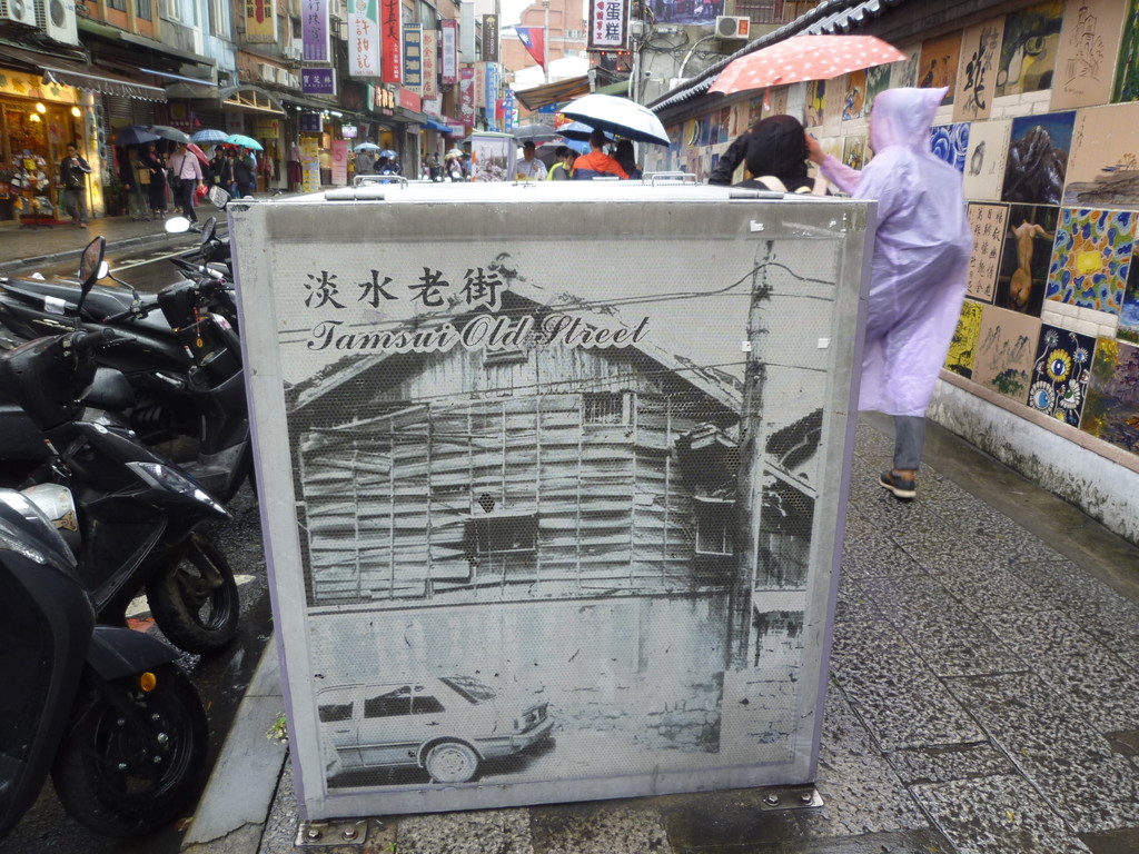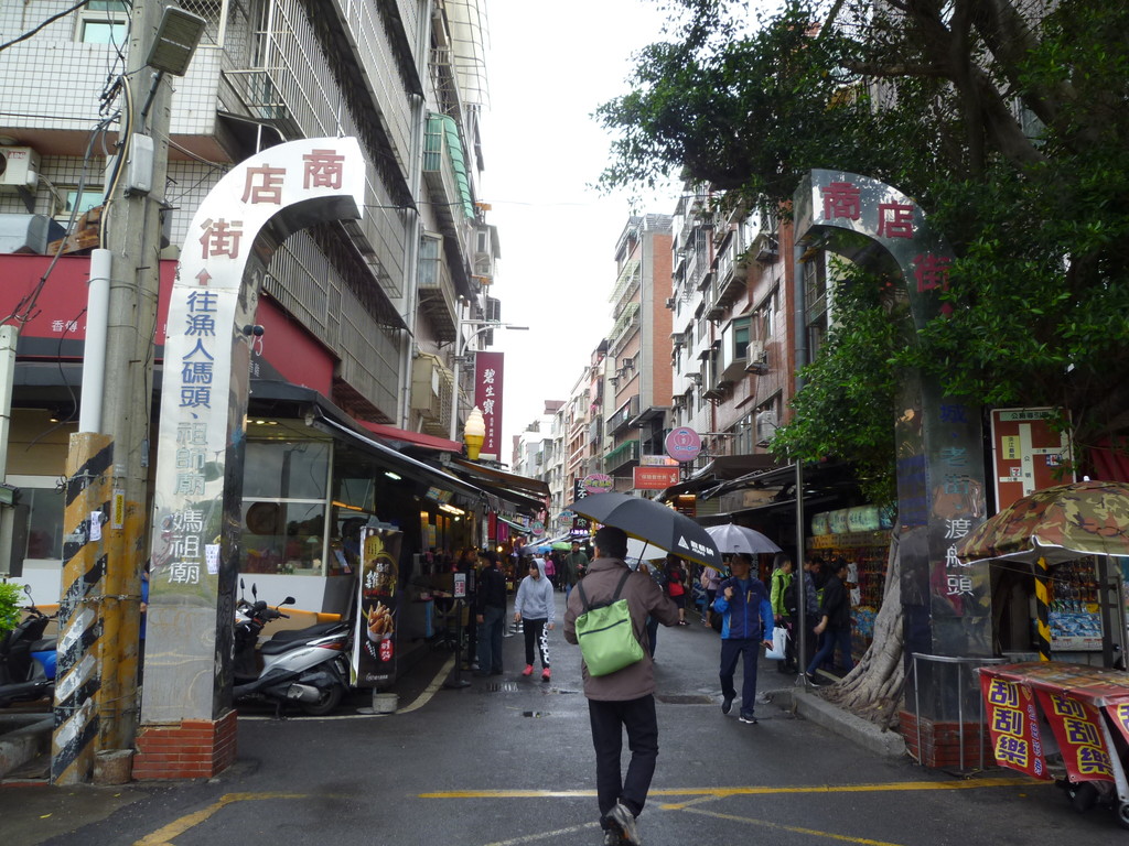 生憎の雨の中、淡水老街を歩いてみました。ここの老街は、駅の傍から三叉路迄長い老街が続いています。道の両側には、食べ物やお土産屋を中心に多くの店が軒を並べています。