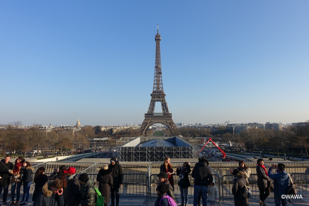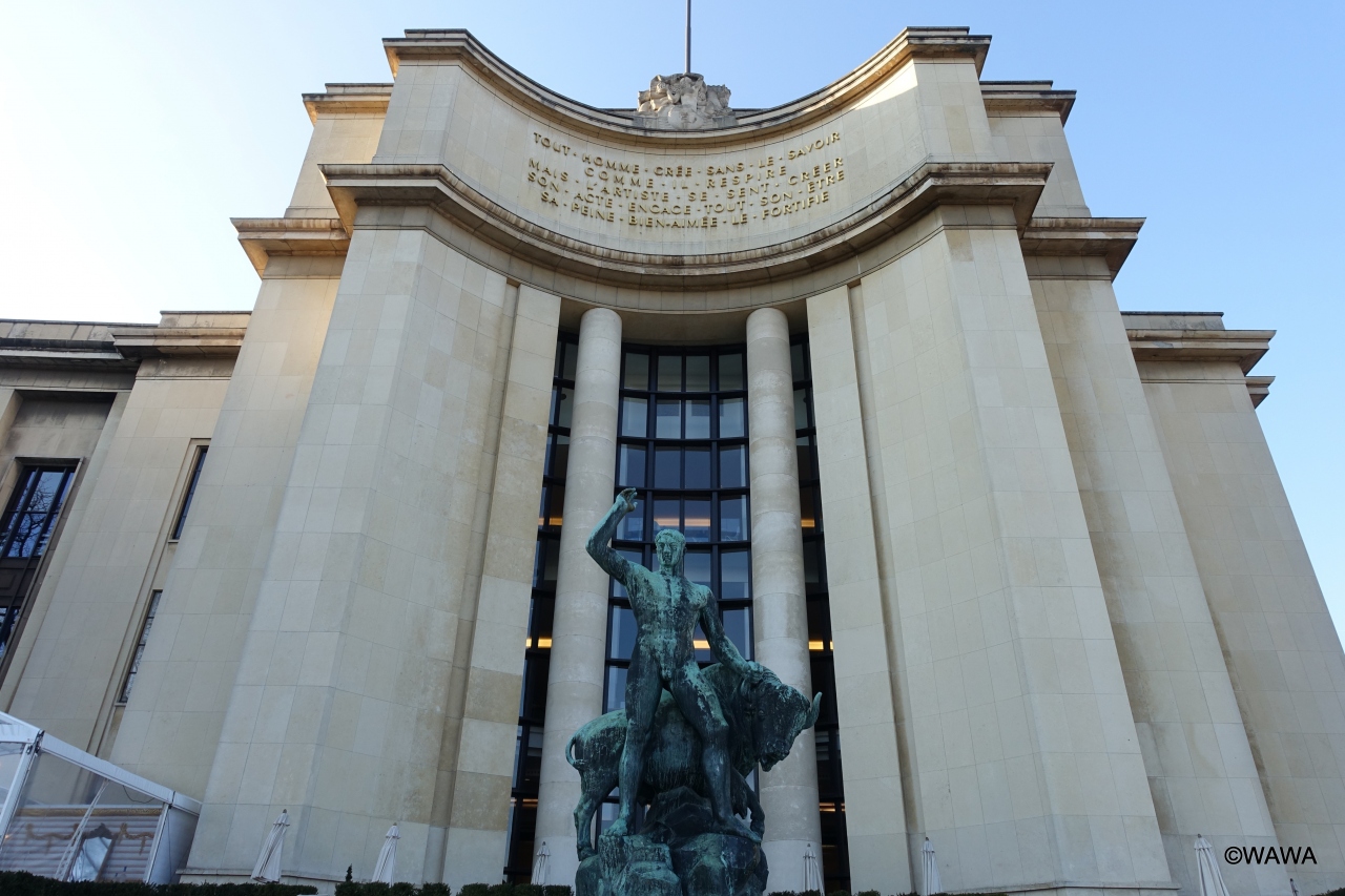 シャイヨー宮はエッフェル塔を正面高台から望むことが出来る場所です。左右対称の大きな建物には海事博物館(休館中)や建築・文化財博物館(Cité de l'architecture et du patrimoine)など幾つかのミュージアムが入居しています。