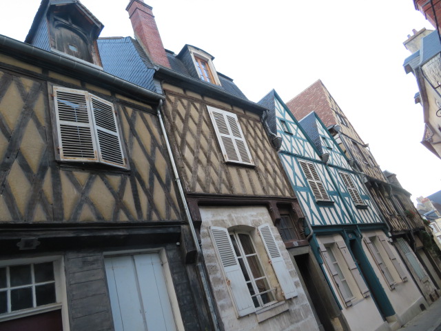 ブールジュは木組みの家が多い街です。しかし、普通に街を散策していると案外少ないことに気づきます。このブルボヌー通りに入ると、ここに木組みの家が集中していたことがわかります。こげ茶だけでなく、赤やピンクの色とりどりの木組みの家を楽しめる通りです。