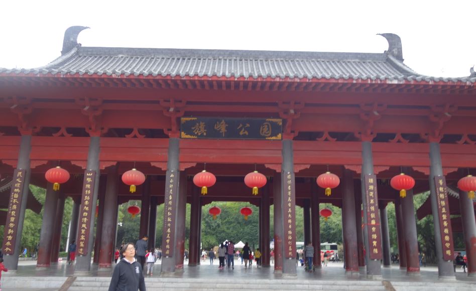 宿泊していたプルマンドンガンフォーラムホテルのすぐ隣の公園が旗峰公園でした。山門風の入り口の前は大きな広場になっていて様々な遊びで市民が楽しんでいます。また、公園内にはボート池や遊歩道もあって東莞市民の憩いの公園になっています。