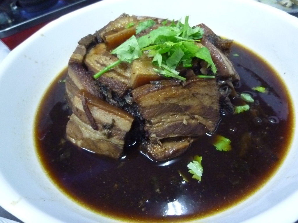 私は客家料理が好きで、ご飯を三膳も食べてしまいました。
