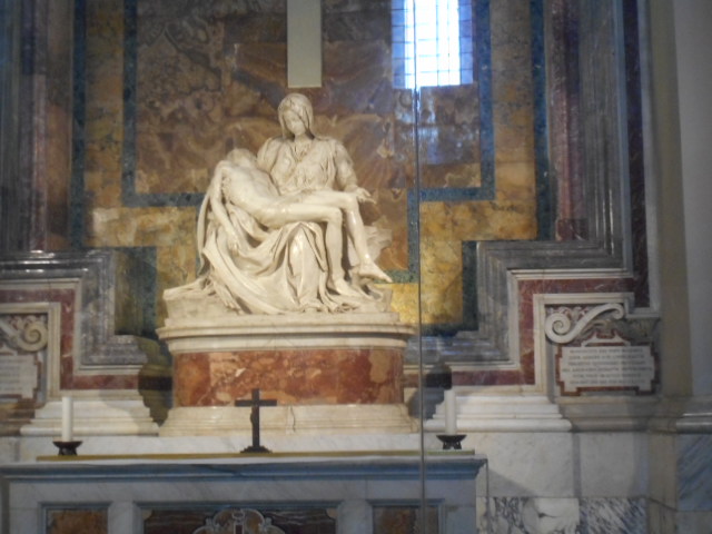 バチカン市国にあるカトリックの総本山の”サンピエトロ大聖堂”は天井の高い荘厳な内部で、信者でなくても頭を垂れる空間でした。入口近くにはミケランジェロ作のピエタの像があり、法王の祭壇や店蓋はベルニーニの作で、芸術作品も素晴らしかったです。入館前には荷物検査があり、長蛇の列もできますので、早朝に並ぶことをもお薦めします。
