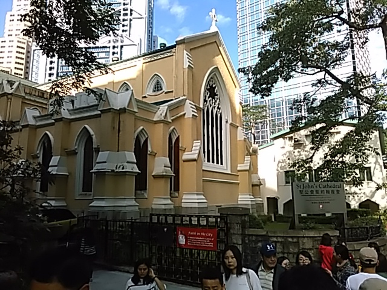 フェリーふ頭からバスで4.3ドル(65円)です。MTRの最寄りは金鐘駅です。1850年頃に英国教会として建てられた、香港で最古の教会です。近くを通ったら、鐘が鳴り響いていたので寄ってみました。調度、花嫁が父親と入場するところで、道路側からタイミングよく花嫁を見ることができました。幸せな気分になりました。