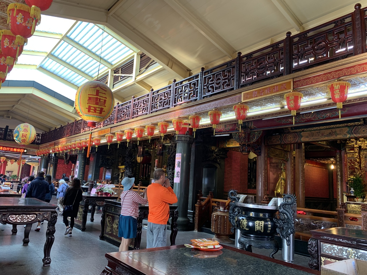 台北からMRTに乗って関渡駅まで行き、歩いて關渡宮まで行きました。徒歩15分ぐらいでした。関渡駅から關渡宮までバスでも行けますが台湾のバスはバス停に立っていても手を上げないとバスは素通りするので要注意です。關渡宮は1661年創建の台北北部最古の媽祖廟で台湾の金運のパワースポットとして観光雑誌に載っていました。敷地はかなり広くたくさんの所見がありました。台北から少し離れているためか、観光客は少なかったです。北投や淡水の近くなので一緒に観光することをお勧めします。