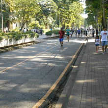 たくさんの人がジョギングを楽しんでました。気温は30度を超え日差しも強いのに。熱中症にならなきゃいいけど。