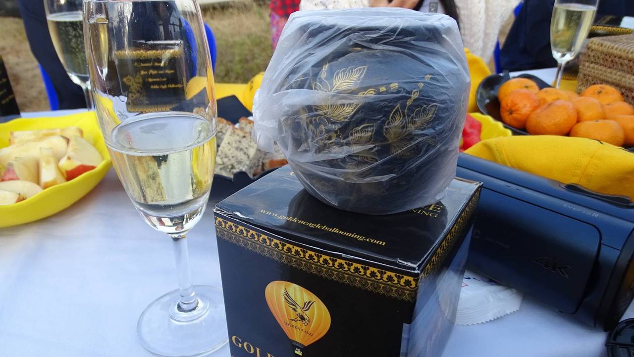 ゴールデンイーグルのプレミアムフライトは元日料金10ドルプラスで400ドルでしたが、ホテル送迎があり、USBメモリー、キャップ、バガン漆器、フライト証明書のお土産も付いてます。