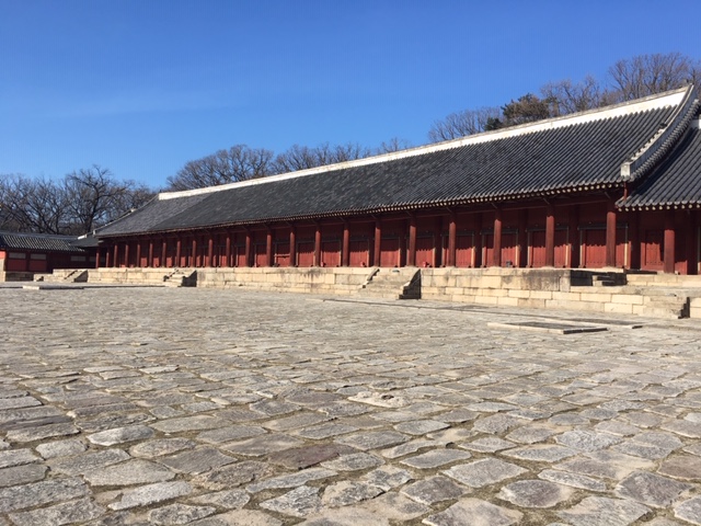李氏朝鮮の祖先の霊を祀る宗廟の中でいちばんのハイライトの場所です。韓国では肉体を祀るお墓以外に霊(位牌)を祀る場所を別に作るのだそうで、この正殿がまさにそれです。日本語のガイドツアーに参加しましたが、ガイドさんによると何度か建て増しされたそうです。なので横にものすごく長い建物でした。とても厳粛な場所なので階段の上り下りにもしきたりがありました。