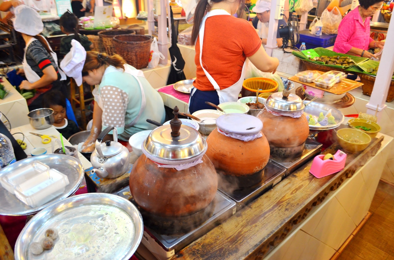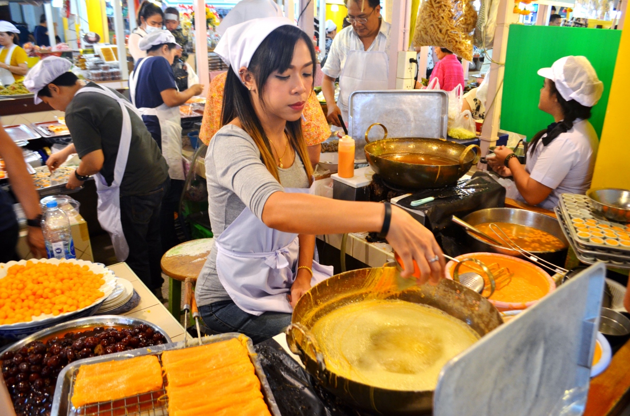 同時に、建物内の一角にある吹き抜けエリアではタイのお菓子を揃えている屋台街があるので、シルクに興味なくても様々なタイのお菓子が食べてみたい方にはオススメ。