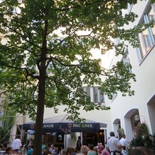 人気がある店のようで、テラス席はいっぱいでした。店内には客は座っておらず、中に入ると奥へと案内され、中庭に出ました。中庭は良かったのですが、店内でないと煙草を吸う人がいるので気になりました。ドイツ人は外での喫煙が多い感じです。白ソーセージを注文したかったのですが、夜なのでありませんでした。料理はまあまあでビールはおいしかったです。