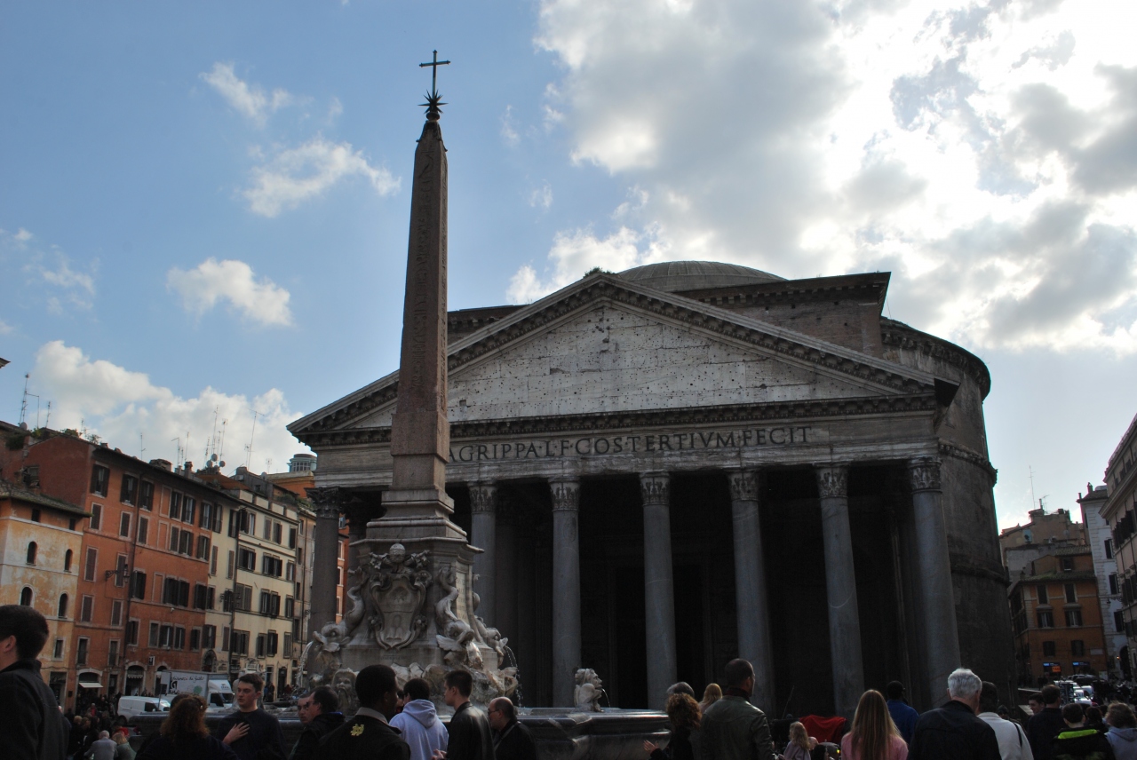 パンテオンとオベリスクと噴水を一緒に写真に収めるとよい