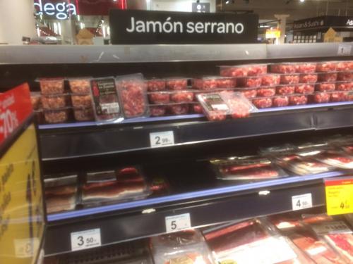 ヨーロッパ全土に展開しているスーパーチェーンカルフールのマドリード店です。さすが、スペインだけあって、ハムの品揃えが豊富です。真空パックで保存されているので、ホテル等に持ち帰って食べることもできます。確か日本には持って帰れないのでそこは気をつけてください。
