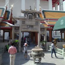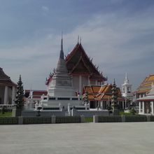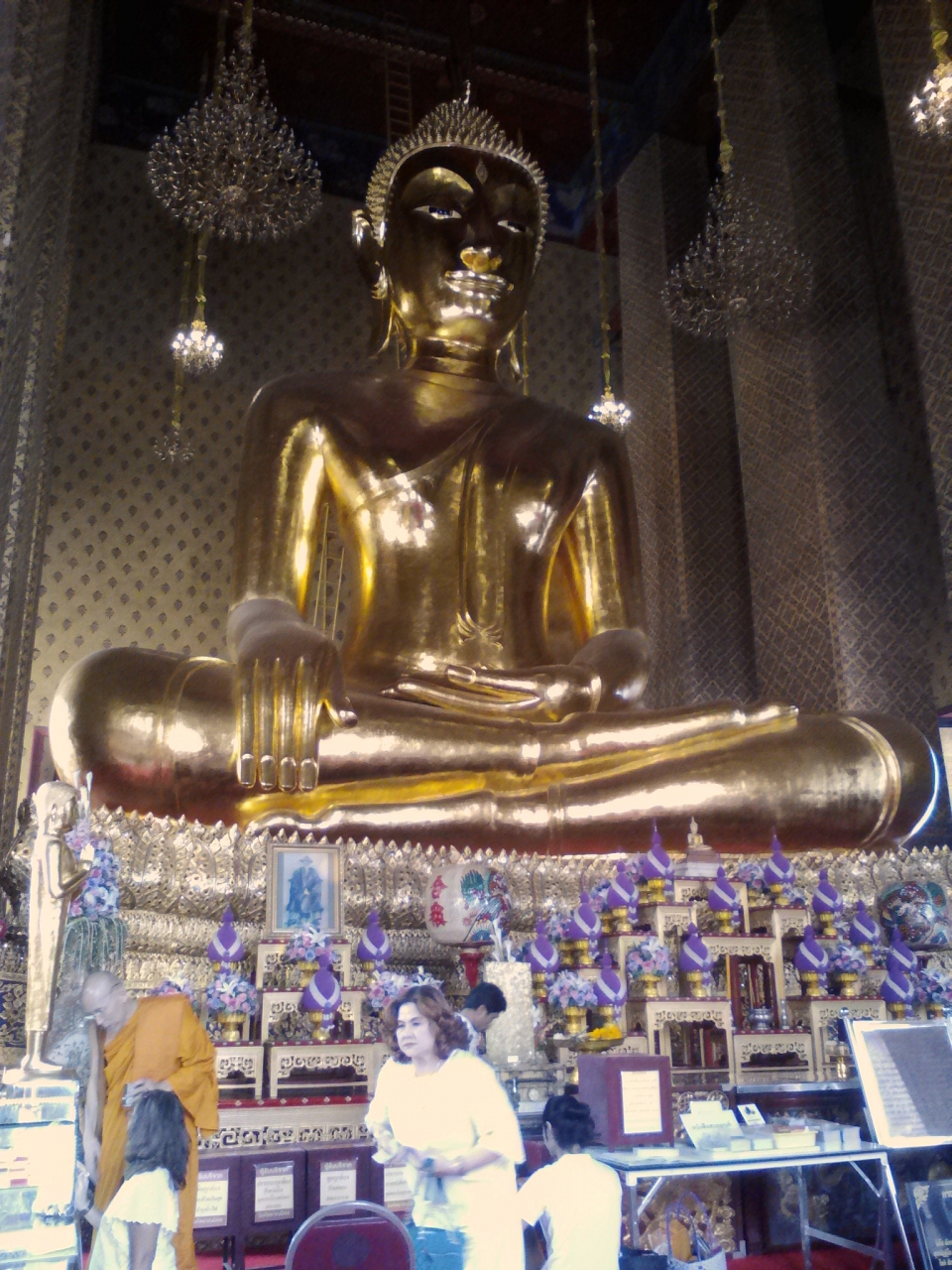 パーククローン市場の端の船着き場「Atsadang」から渡し船で行きました(運賃6B)。都会の寺院らしく整然とした美しさがあります。この寺院はあまり知られてはいませんが、縁起の良いとされる9という数字にちなんだ「9ヶ所参拝」にも選ばれるほど。本堂前には香炉がありどことなく中国寺院風です。この寺院の見どころは何と言ってもタイ最大級の大きさを誇る座仏像。必見です。