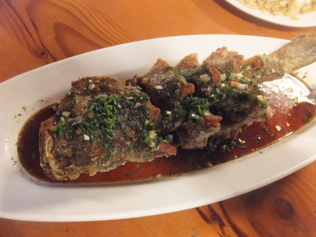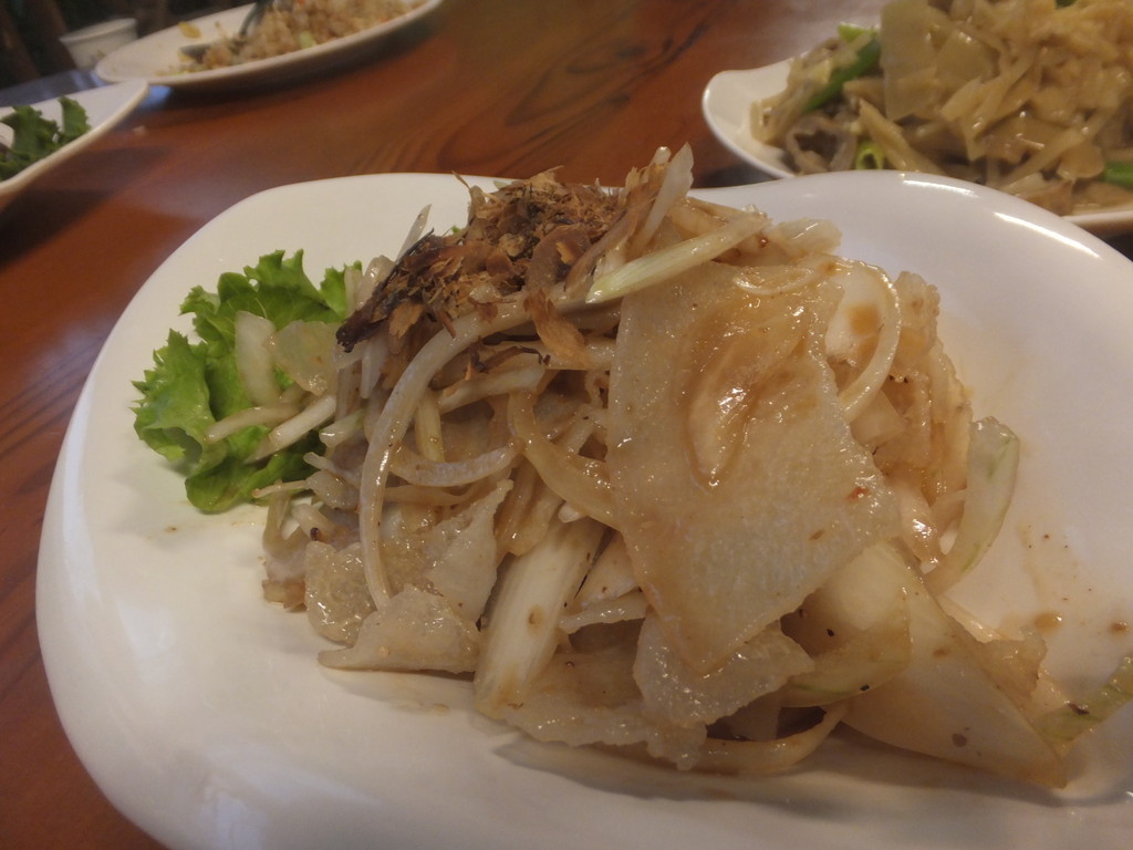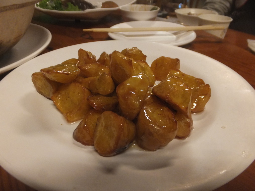 料理は、木耳の刺身、炒飯、豚の皮の料理、豚の内臓、猪の肉料理、川魚の甘酢あんかけ、スープ、キャベツ炒め、鶏肉料理、大学芋などが出てきましたが、皆さん口を揃えてそう言っていました。