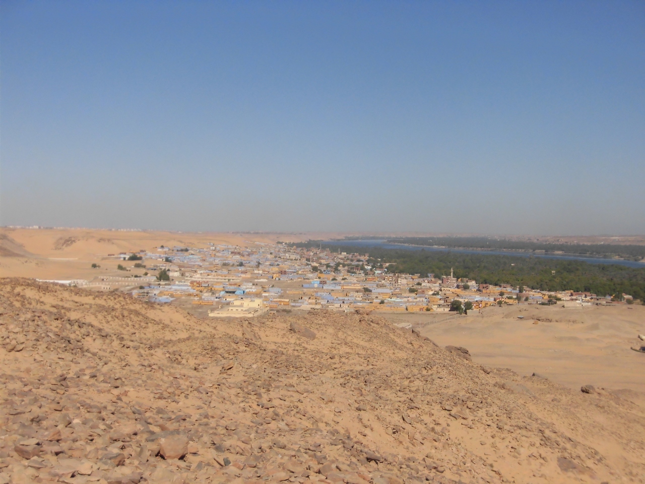 駅の正面をナイル川方面に歩くと対岸に渡るフェリー乗り場があります。外国人は片道5ポンドです。渡って左手の方にチケット売場があり、そこから中腹に登る階段を登って行きます。