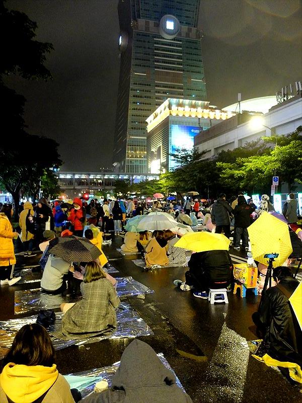 例として、台北101の東側を通る松智路は台北101の眺めがよく、大晦日の夕暮れからは歩行者にも開放されて花火見物の場所取りに人が集まって来ていました。
