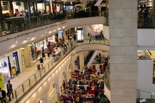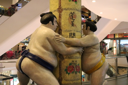 エスカレーターで上がりながら、いろいろなフロアを見ましたが、なぜ相撲取りがいるのか???見るのはおもしろいですが、ちょっと違うかな、と。