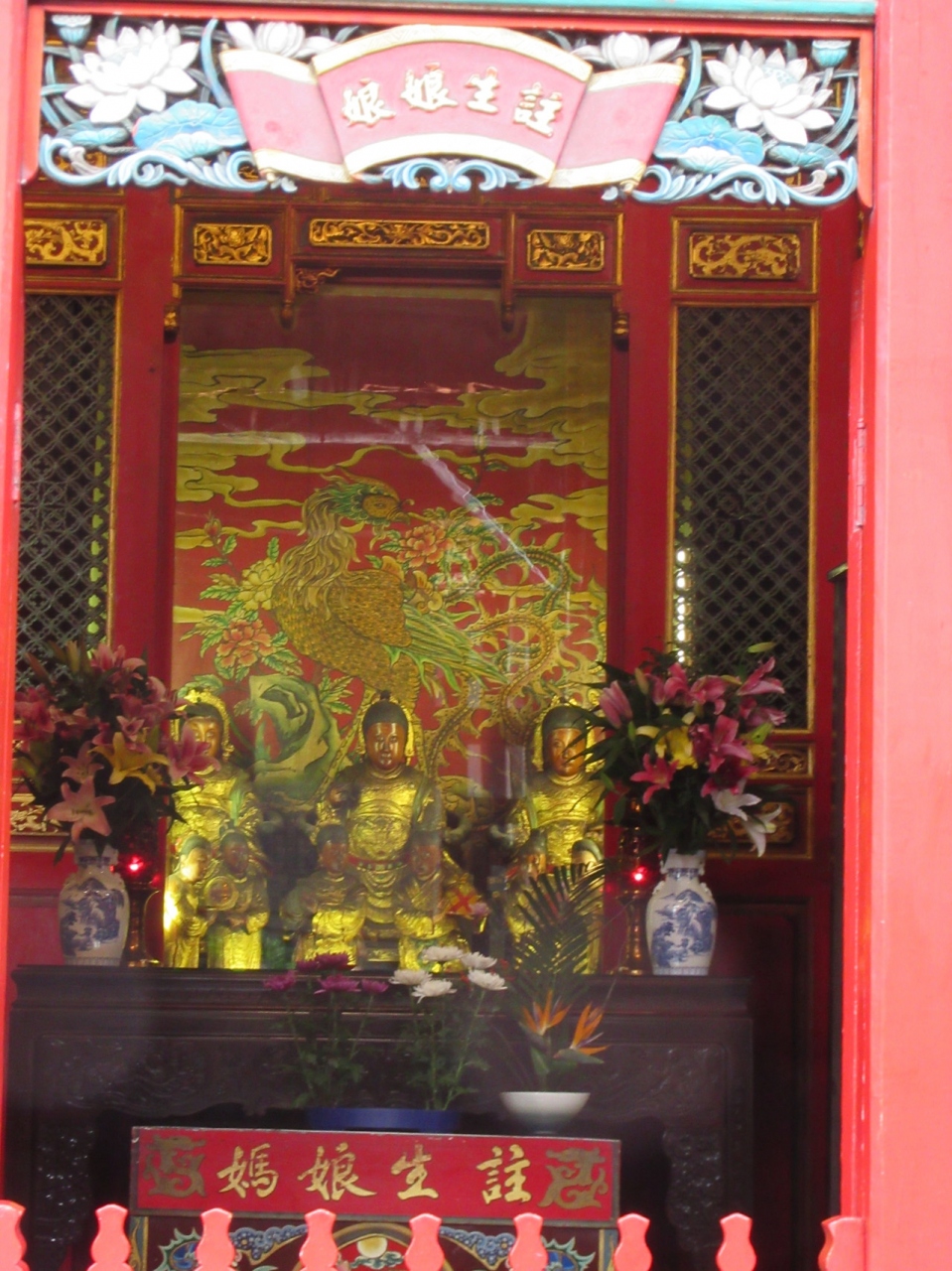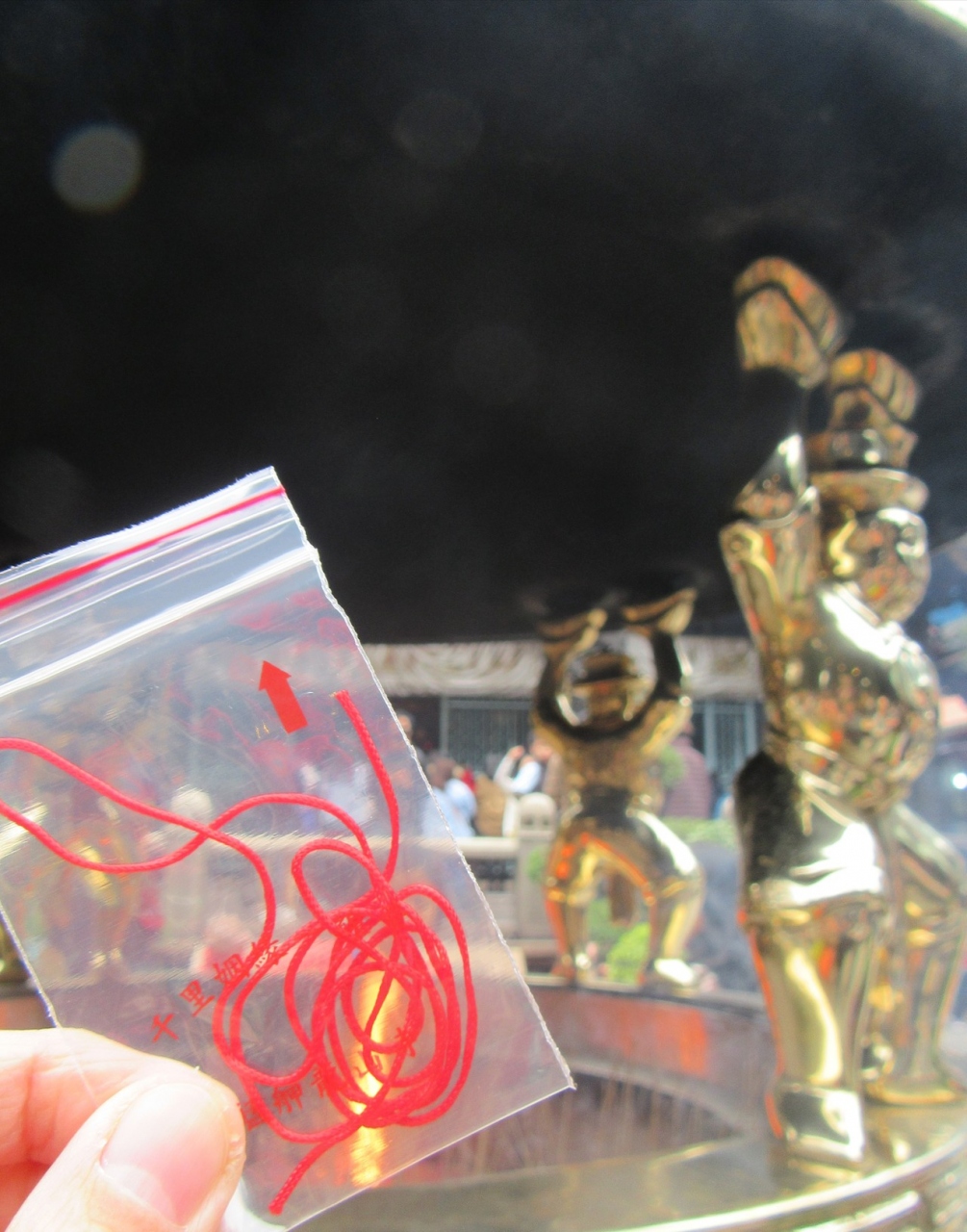 いろんな神様の前でお祈りします。なかでも良縁の神様の前でお願いするときは赤い糸をもらい三日月の木片を落として表と裏がでたらバッチリです。赤い糸をお財布にしまって帰りました。お寺の龍の装飾がとにかく素晴らしく、最強パワースポットです!