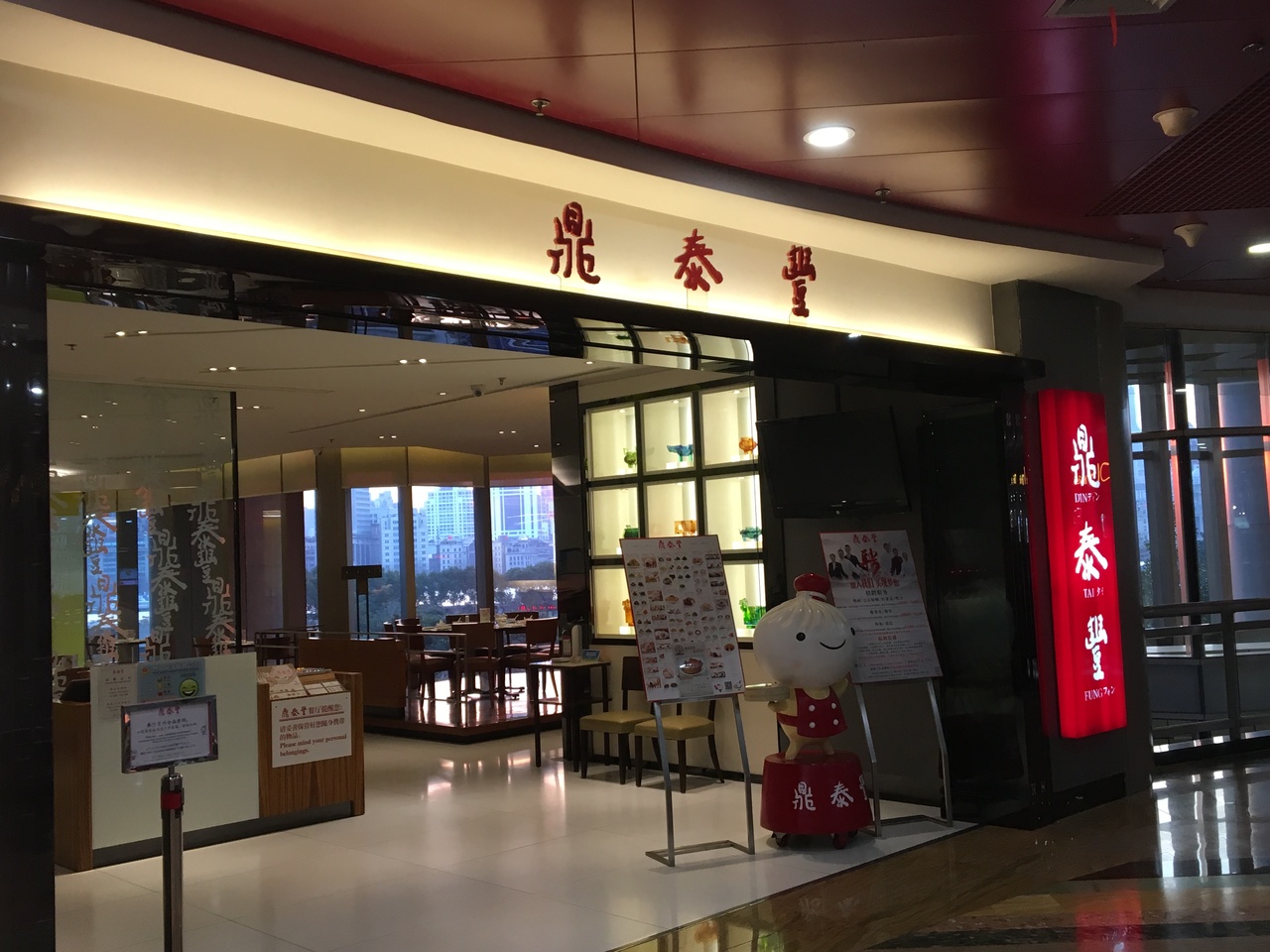 正大百貨店の三階にあるデンタイホンです。地下鉄駅から二階の陸橋を渡って建物の二階に入れるのでとても便利でわかりやすいです。百貨店の建物の奥、黄浦江側です。ちょうど、サンセット時にあたり、レストランからのバントの景色も良かったです。割と席数も多かったです。