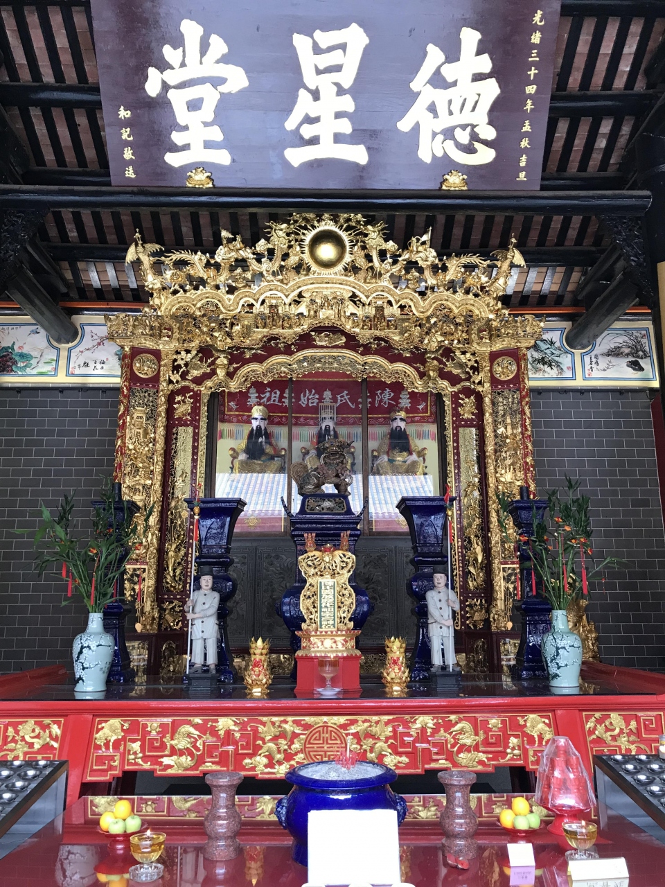 陳一族の位牌が並んでいる以外は、他の中国寺院と同じような雰囲気ですが、彫刻は内外とも見事で華やかでした。