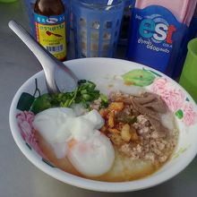 ピマーイのモーニングマーケットと言ったら、とにもかくにもまずお粥(ジョーク)。だと思います。卵&具材全部乗せ(写真は生姜なし)でも15B!しかも超うまい!毎年来ていますがお値段据え置きでうれしい限りです。結構お腹いっぱいになりますがもの足りない方はまだまだいろいろありますので好きなものをつまんじゃって下さい。