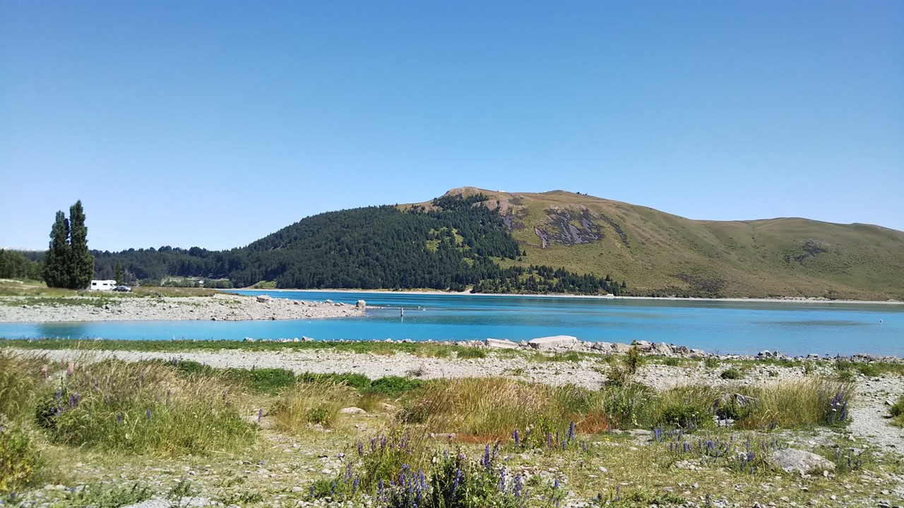 クライストチャーチから長距離バスでテカポに行ってきました。本当は宿泊したかったんですが、3カ月前にも関わらず12月後半のホテルはどこもいっぱいで予約できず、マウントクックに行く途中に、写真撮影で15分程度の下車でした。それでも雲一つない晴天に恵まれて、めちゃくちゃ綺麗な湖には心から感動しました。こんな恵まれた天候にもかかわらず、宿泊できなかったのは、本当に残念でした。