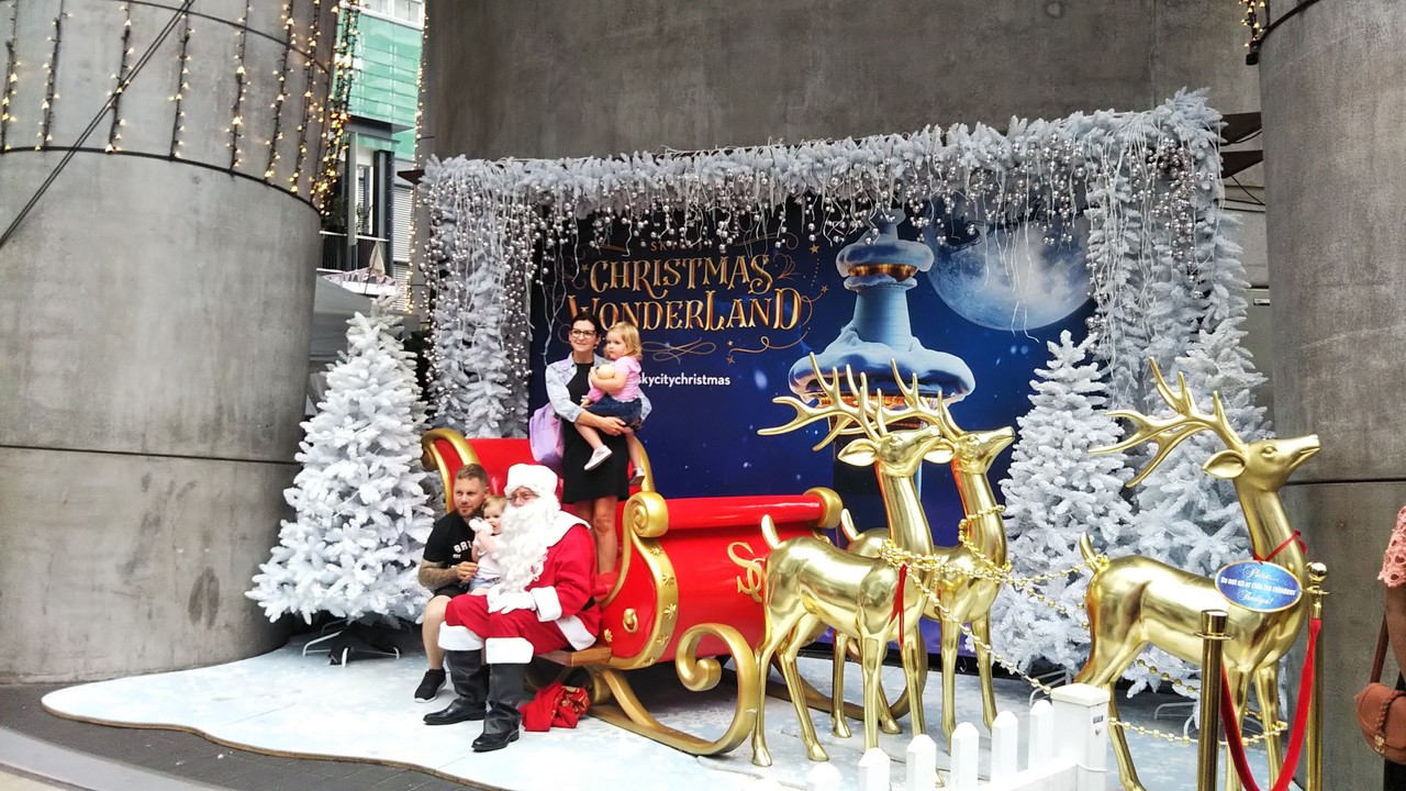 オークランド観光の1つとして、スカイタワーに行ってきました。12月22日―23日のクリスマスシーズンだったので、スカイタワーの入り口近辺にはサンタさんやツリー、サンタさんの家など、様々な装飾がほどこされていました。真夏のニュージーランドでこの時だけはクリスマスの雰囲気を味わえました。あまり天気が良くなかったので、上には行きませんでした。