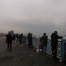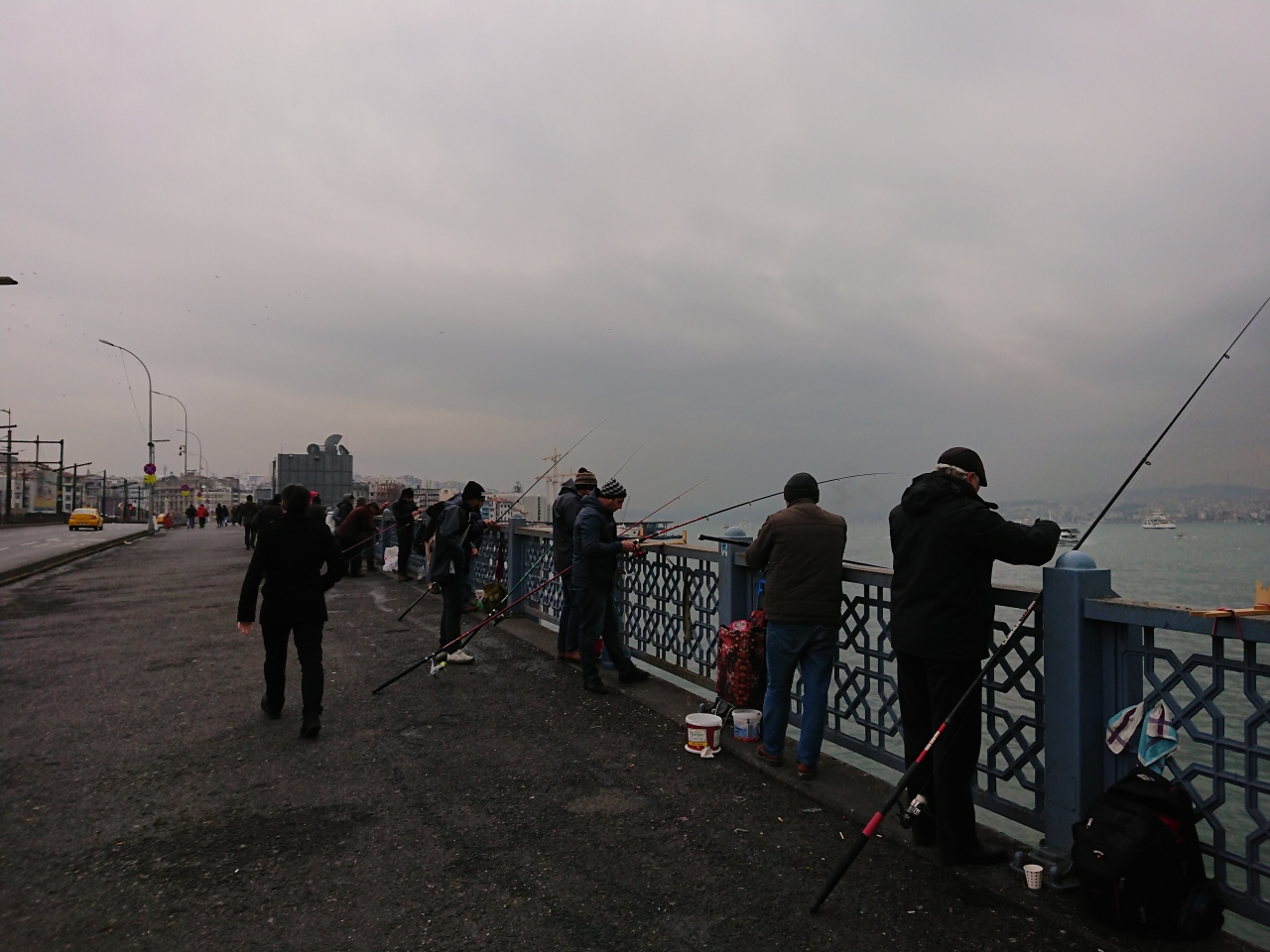 イスタンブール旧市街の海沿いを歩いていると、トラムも走るガラタ橋を下から眺めることができます。人がたくさんいるので観光客かと思ったら、びっしり並ぶのは地元の釣り人でした。レストランに卸すのでしょうか。朝から夕方まで一日中います。