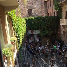 立ち入り無料の中庭でジュリエット像の胸に触ってきましたが、順番待ちで狭い庭は大混雑でした。とにかくあまりの人に入って5分ほどで立ち去りました。早い時間に行った方が人が少なくてゆっくり滞在できると思います。