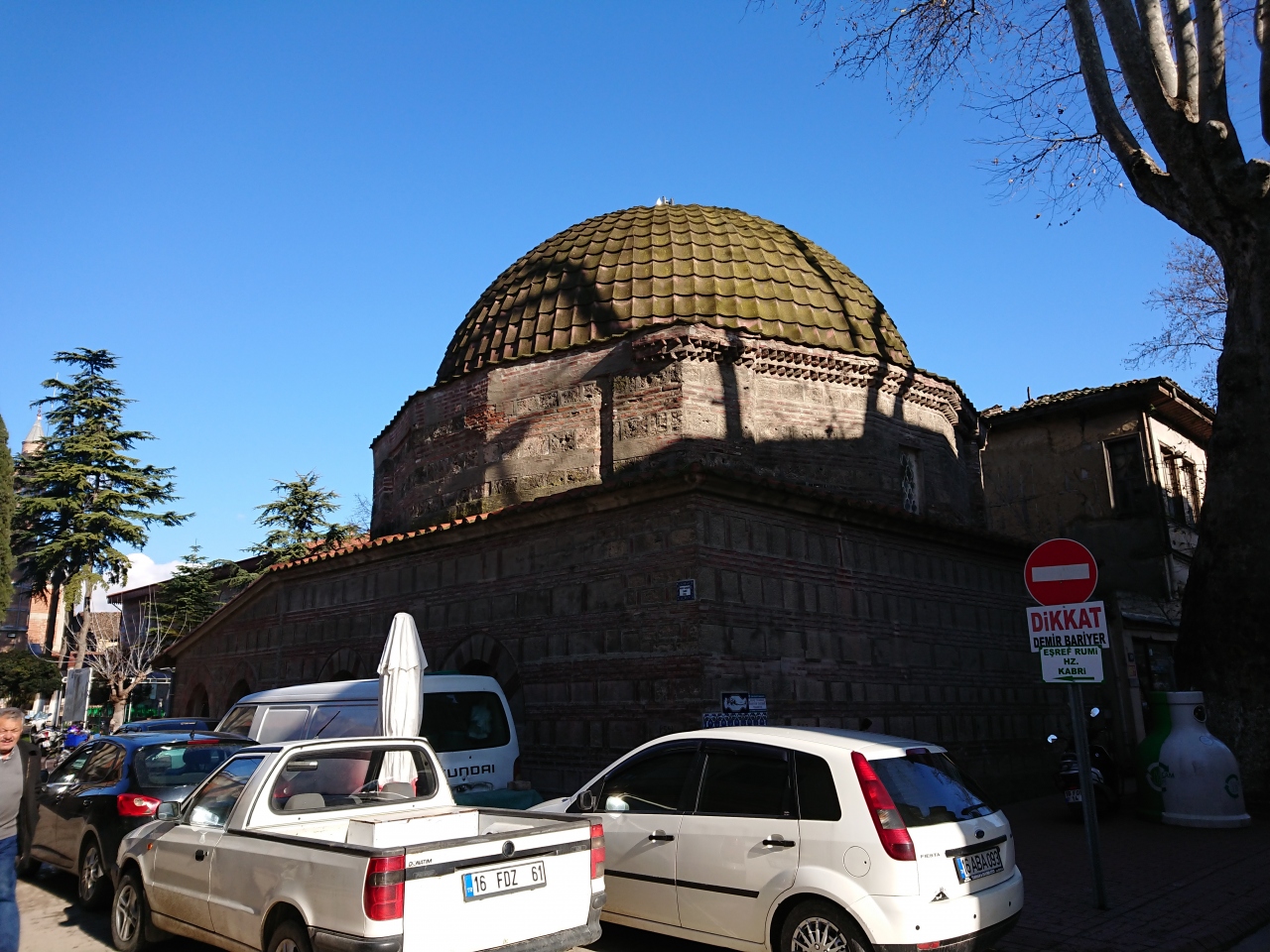 イズニクの街の真ん中あたりにある、かなり古い感じのモスクです。オスマン建築としては最古のものらしく、建築年らしい1332と書かれたタイルが張ってありました。小ぢんまりとした建物の上に緑色のドームが乗っている様子が素朴です。