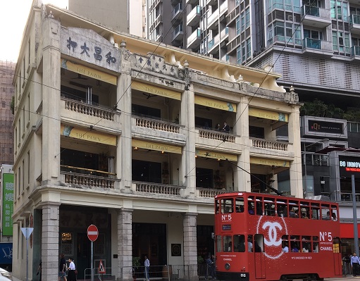 以前からトラムで中環から銅鑼湾方面に向かって走っている時気になっていた、右手に見えるレトロな雰囲気の3階建の建物。香港在住の友人に連れて行ってもらいました。