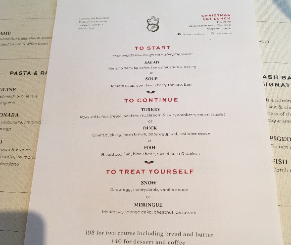 時期的にクリスマスセットランチになっていました。サラダかスープ、メインは3つの中から選ぶ形式で198HK$それにデザートとコーヒーが+40HK$。