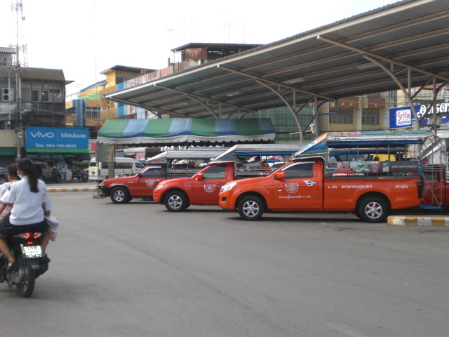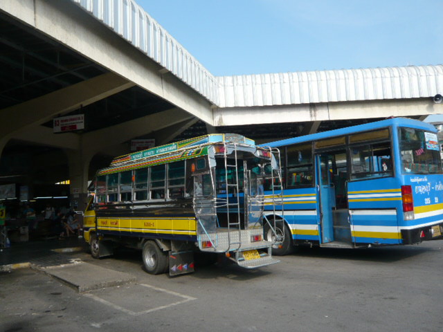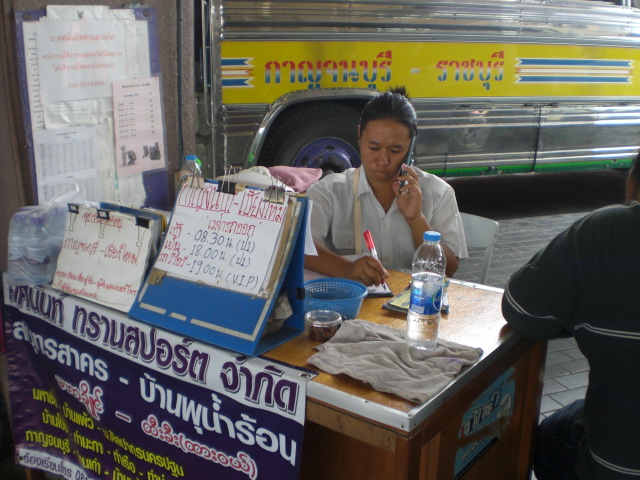 カンチャナブリ―のバスターミナルは、近隣各地に対する移動の中枢の役割の他、観光のための拠点ともなっています。