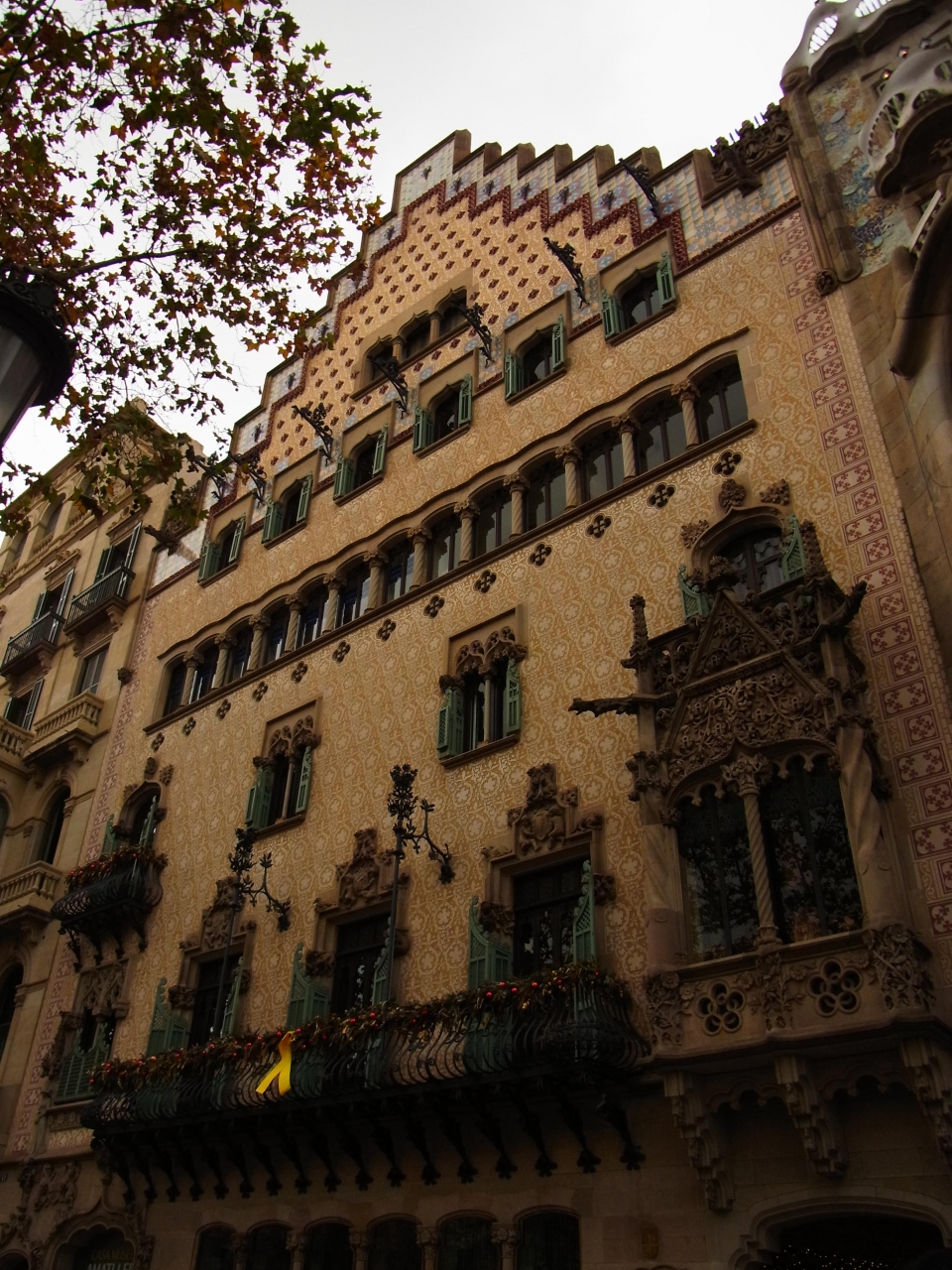 グラシア通りにある、モデルニスモ建築の一つです。パサッチ・ダ・グラシア駅の近くにあり、カサ・バトリョと隣り合って建っています。カサ・アマトリエール、カサ・バトリョの建物の前は、写真を撮る観光客でいっぱいでした。隣り合う建物の、右側がカサ・バトリョ、左がカサ・アマトリエールです。