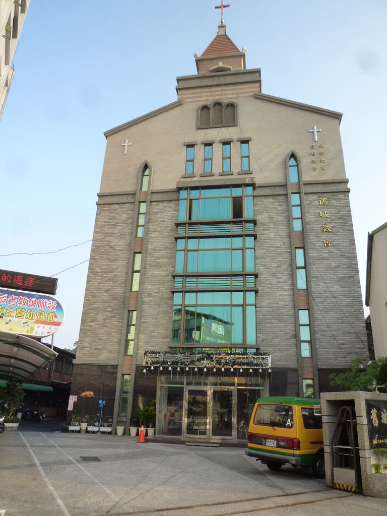 左営大路沿いにある平面的で綺麗な教会ですが、特におススメする教会ではないように思います。