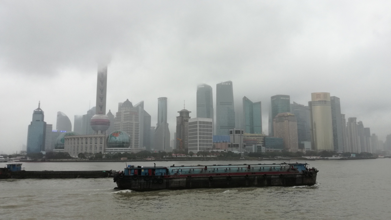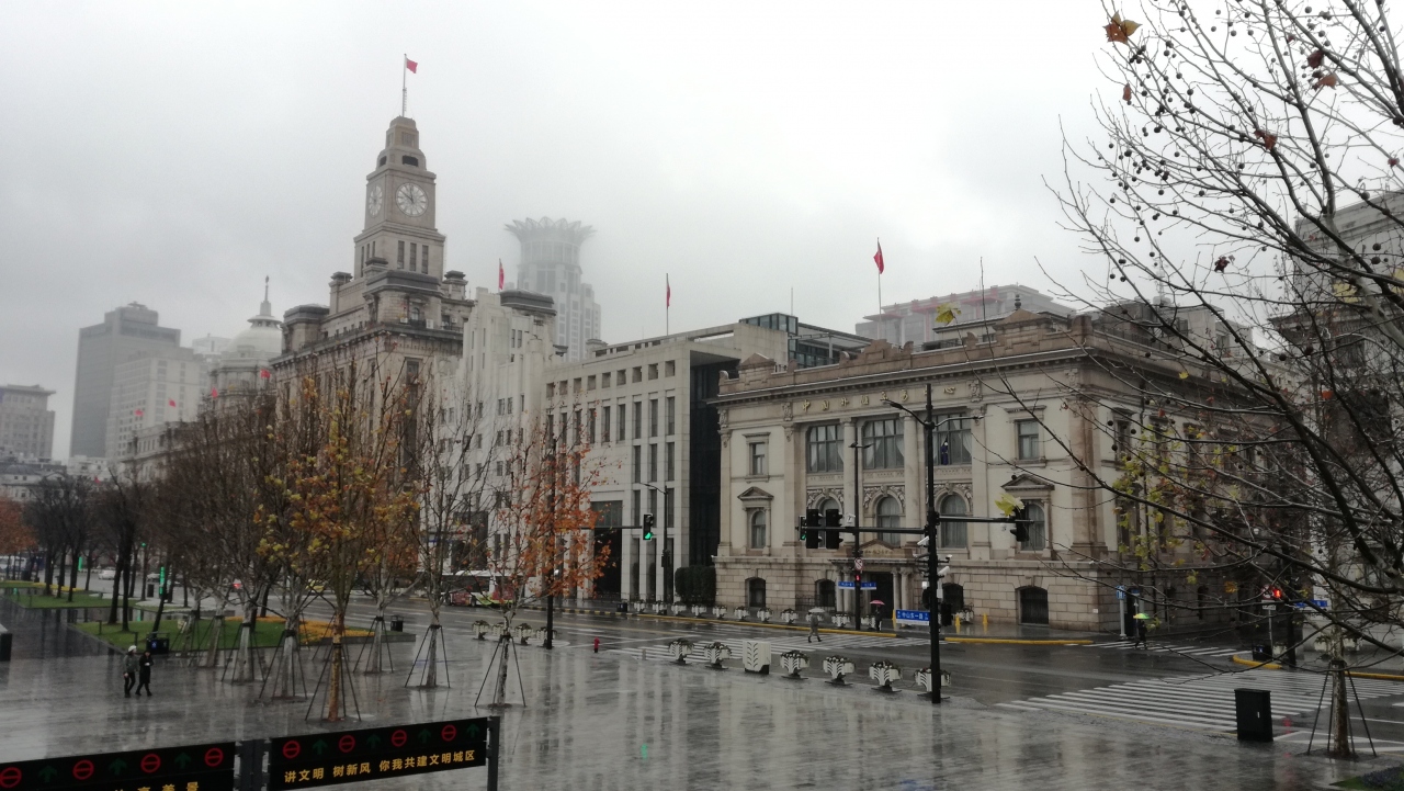 近代的な高層ビル群と租界時代のレトロなビル群。